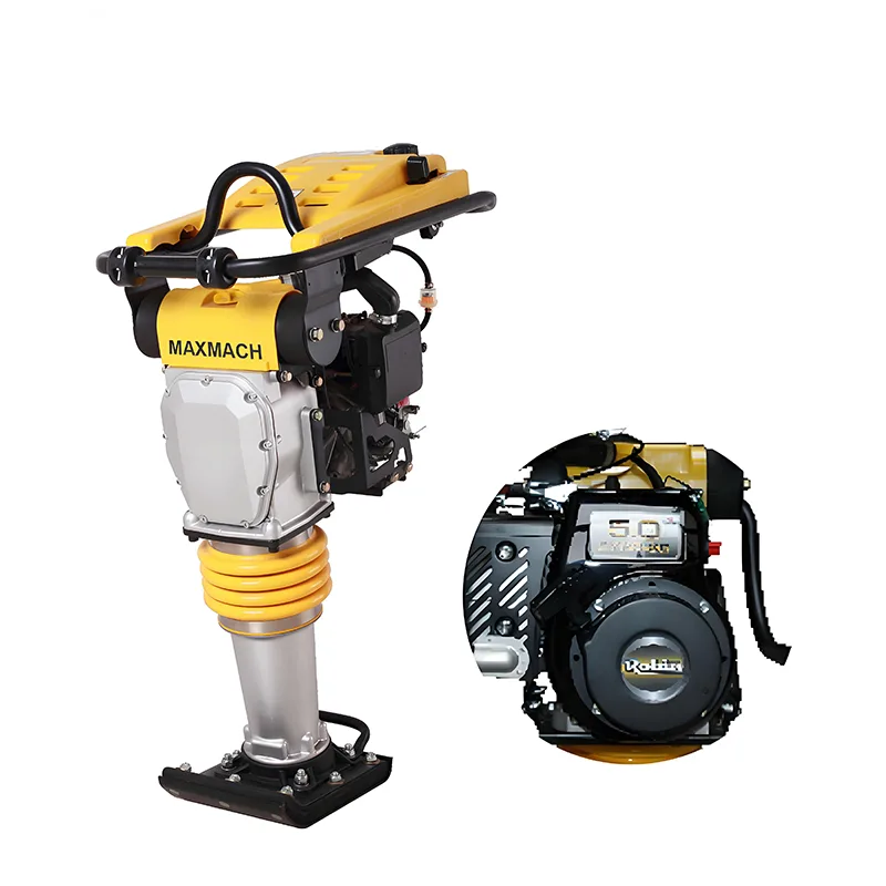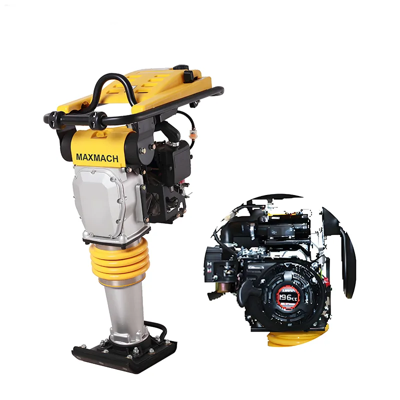 The MAXMACH Vibratory Jumping Compactor is an industrial-grade tamping rammer designed for high-demand construction projects. Powered by a 5HP engine and featuring a vibratory jumping structure, it integrates robust performance with practical usability—delivering 14kN ramming force and a percussion rate of 640-680 times/min, while maintaining an 88kg weight and 10-13m/min advance speed. Suitable for both new and used equipment requirements, it comes with comprehensive quality assurances, including provided video outgoing-inspection, machinery test reports, and a 1-year warranty, making it a reliable choice for industrial construction teams and professional contractors.